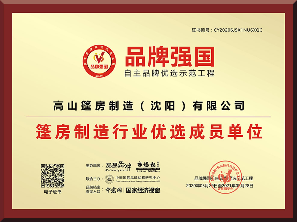 近日,高山篷房制造(沈陽)有限公司,入選了2020年度中央廣播電視總臺“品牌強國工程”。成為“篷房制造行業優選成員單位”。高山篷房將依托央視平臺的力量,打造篷房制造品牌名片,助力品牌強國戰略的推進。