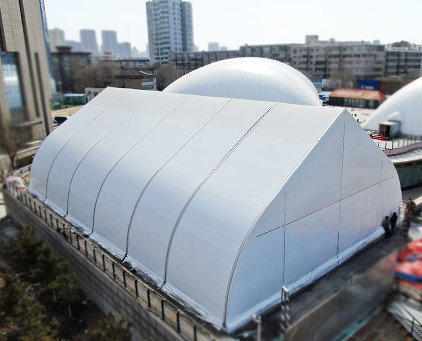 高山企業制作新型篷房、氣膜建筑產品,部件在工廠加工完成,運到現場組裝即可,方便快速,避免了現場噪音、垃圾、建筑的二次污染。高山集團公司為防污制霾、碧水藍天,提供更多的選擇。