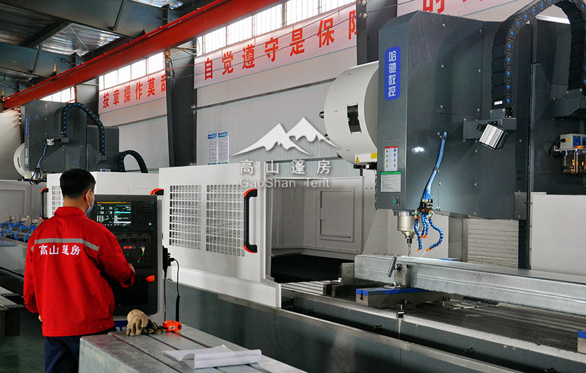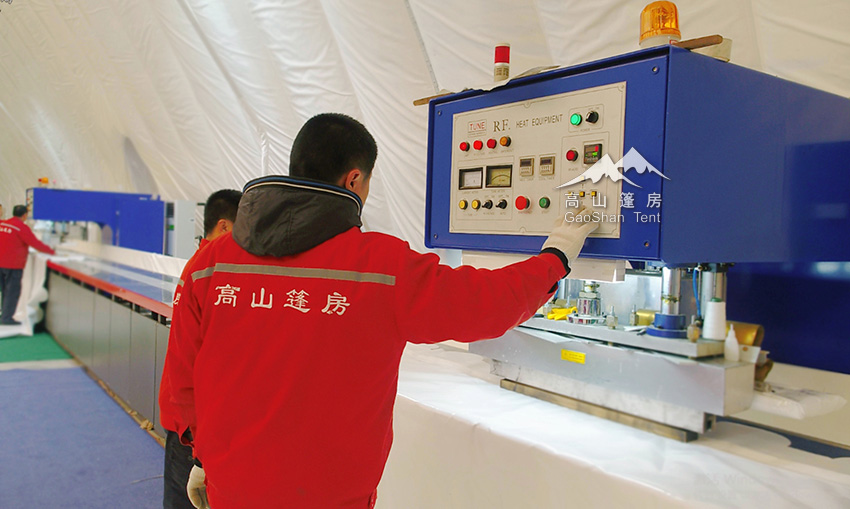 5000平方的恒溫制布車間,先進履帶式移動高頻熱合機器與數控裁剪機器,保證篷布加工的平整度與美觀度,滿足客戶的需求,提升品質與精度,受到客戶好評,加工能力的提高,縮短了交貨周期。