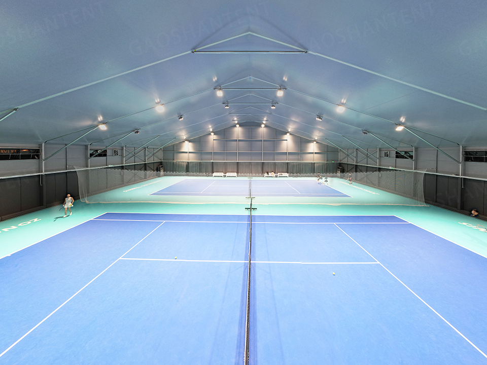 館內設施齊全,配備專業照明系統和空調系統,頂部篷布加棉設計保溫隔熱,顯著降低空調負荷。弧形設計外觀現代大方,邊高達7.5米,為球類運動提供充足空間。