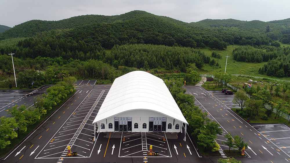不同于常規的人字篷房,拱形篷房的篷頂結構是經過創新改良而成,利用鋁合金可塑性原理將頂部進行壓彎,變成有一定弧度的拱形。