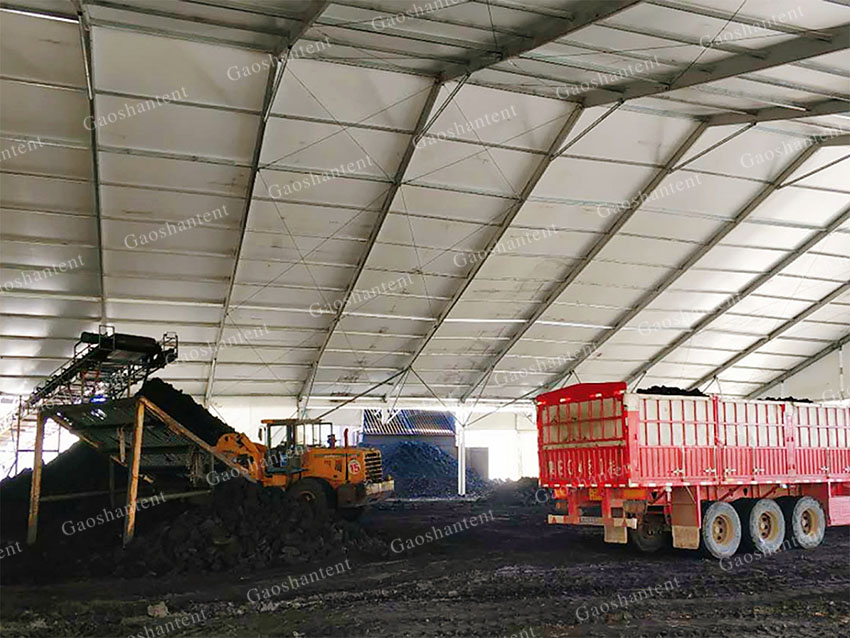 6,耐用防腐蝕;眾所周知,煤因?yàn)楹写罅苛虺煞旨捌渖a(chǎn)加工中涉及的其他化學(xué)物質(zhì),對于鋼鐵腐蝕非常明顯,傳統(tǒng)的密閉設(shè)施,往往短時(shí)間內(nèi)就生銹、損壞,直接影響了企業(yè)的利潤水平和正常生產(chǎn),篷房采用的是高耐腐蝕的篷布及高強(qiáng)度鋁型材,綜合使用壽命可達(dá)15-20年,節(jié)省大量經(jīng)濟(jì)成本。